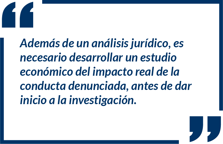 Frente al debate existente respecto de la significatividad de la conducta, el Superintendente dejó clara su posición, argumentando que además de un análisis jurídico, es necesario desarrollar un estudio económico del impacto real de la conducta denunciada, antes de dar inicio a la investigación. A modo de ejemplo, presentó un caso en el cual 7 panaderías aumentaron el precio del pan en 100 pesos de manera simultánea y argumentó que, aún existiendo una conducta anticompetitiva, esta no era significativa, considerando que 7 panaderías de un barrio de Bogotá en el cual puede haber hasta 700 panaderías, no generan un impacto lo suficientemente significativo en el mercado como para que se ponga en funcionamiento el músculo de la autoridad, pues “hay muchas otras panaderías para escoger por fuera de las 7 que acordaron incrementar el precio del pan”.